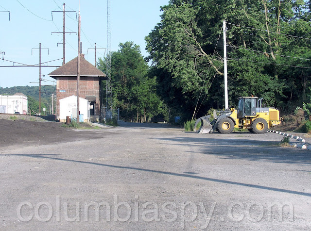 The Columbia Borough Highway Department is continuing the widening and paving of Heritage Drive, which runs parallel to Front Street - on the opposite side of the railroad tracks.